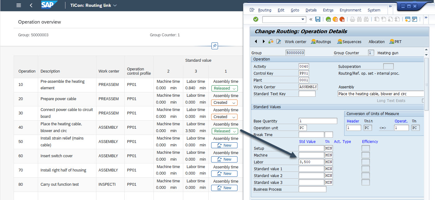 实现工时数据与 SAP 工序(Work Process)的关联与传输