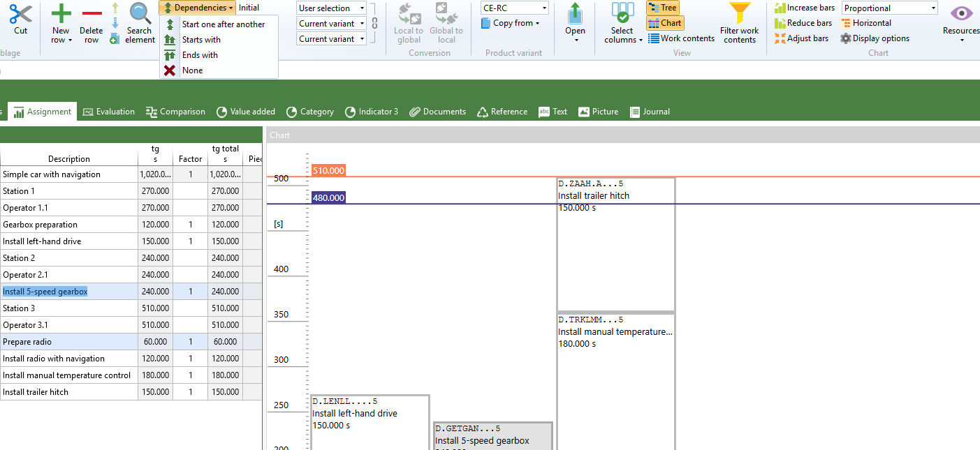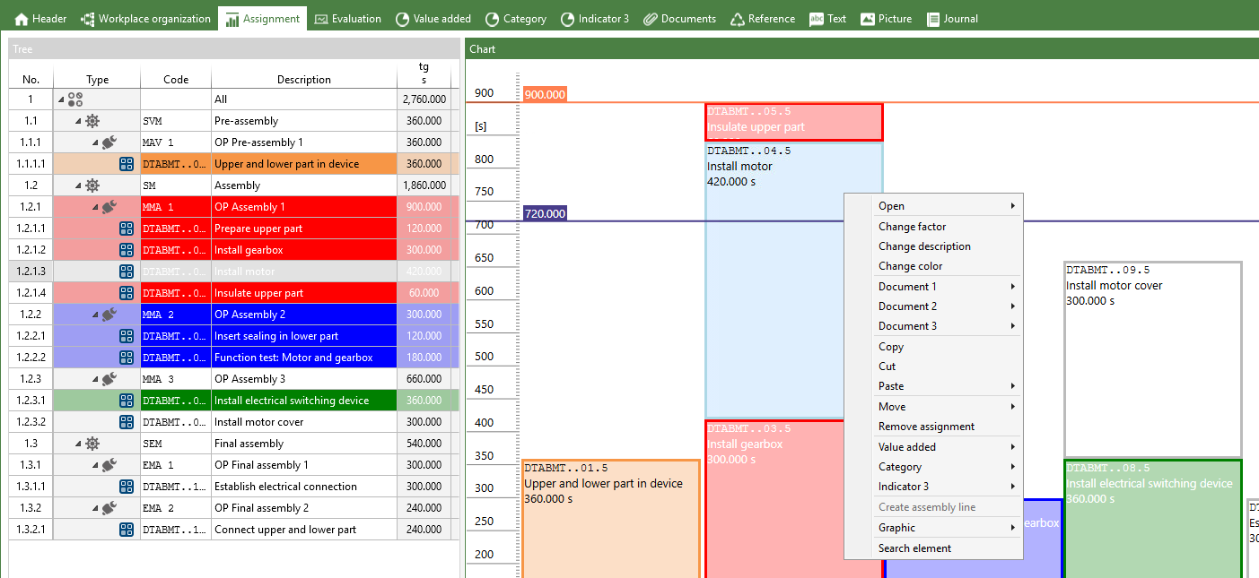 利用象形图描述装配工位及工作流程,并计算生产的 MTM 基准时间。将实际耗时与 MTM 基准时间进行对比,进而识别并挖掘改进潜力。