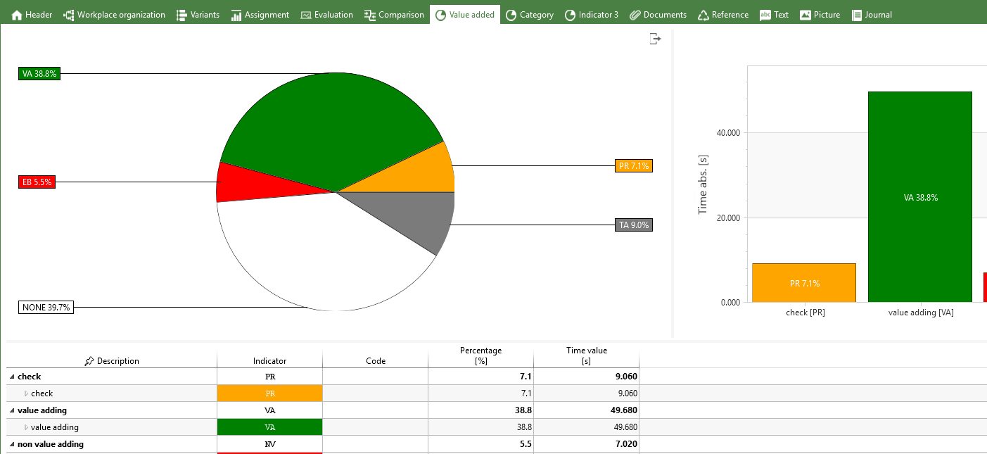 呈现人员与工位的增值占比,实现优化路径的可视化