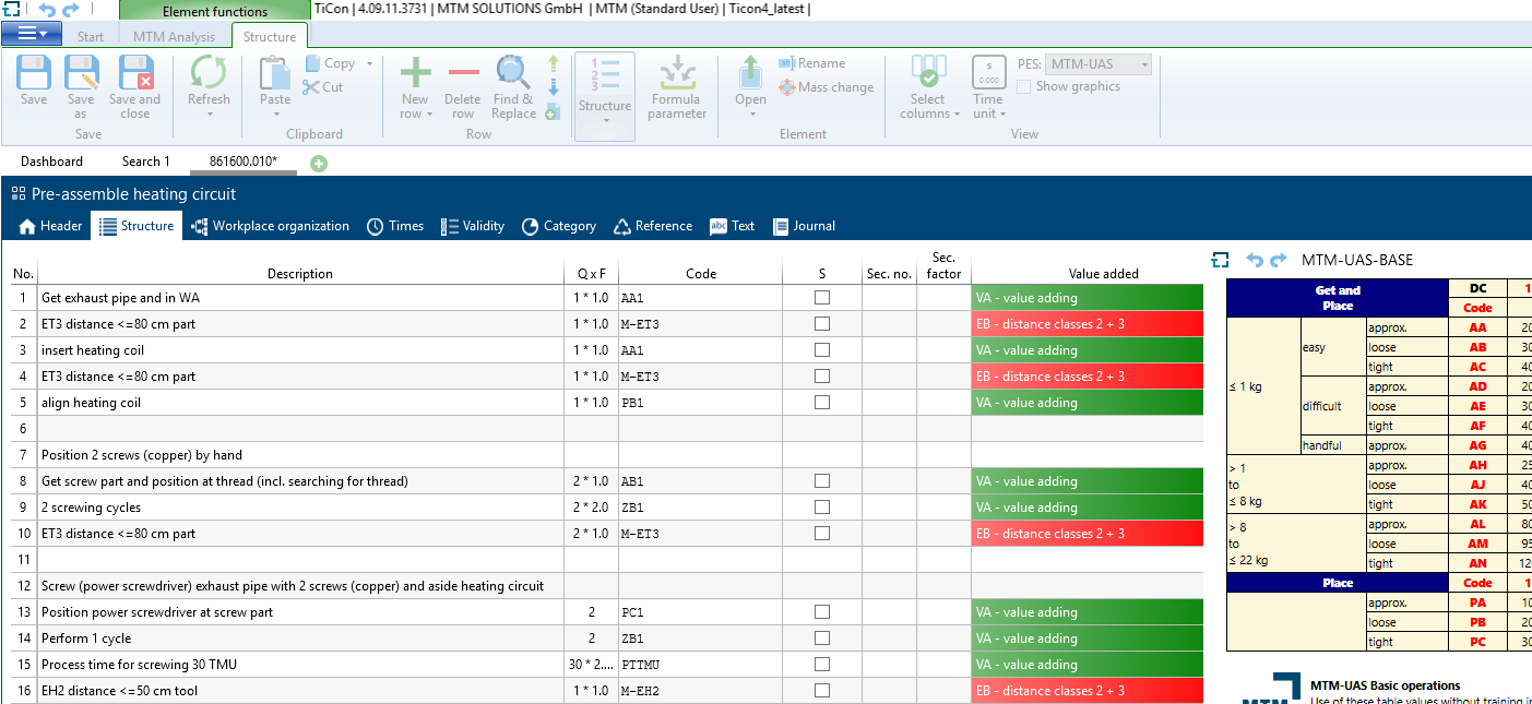 核算 MTM 基准时间并进行目标/实际对比,从而挖掘改进潜力