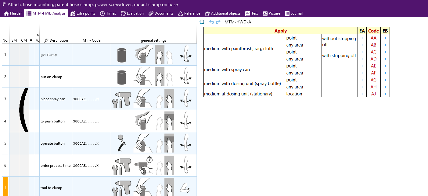 应用 MTM-HWD®(人类工作设计)流程模块系统,实现对作业流程及人机工程影响因素的同步描述