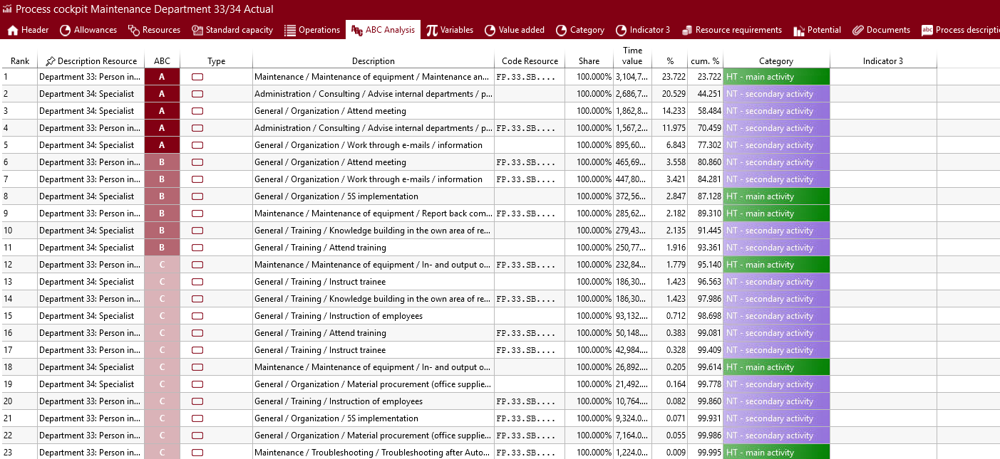 通过图形化方式评估主/辅作业,或以 ABC 分析形式展示