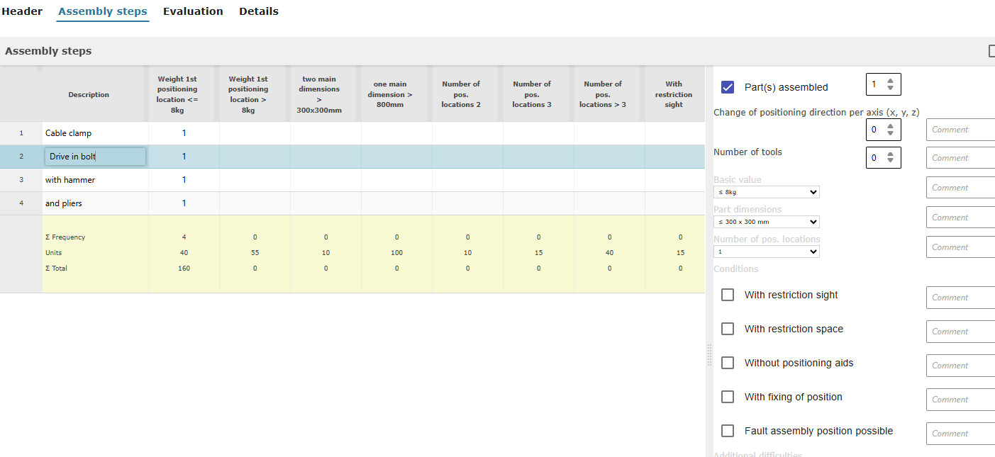 开展不同设计变体的易装配性对比,从而核算初步装配工时